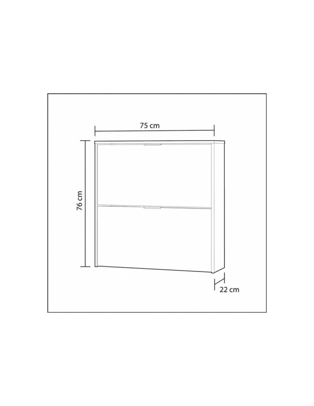 - Mueble: 76 cm (alto) x 75 cm (ancho) x 22 cm (prof.).