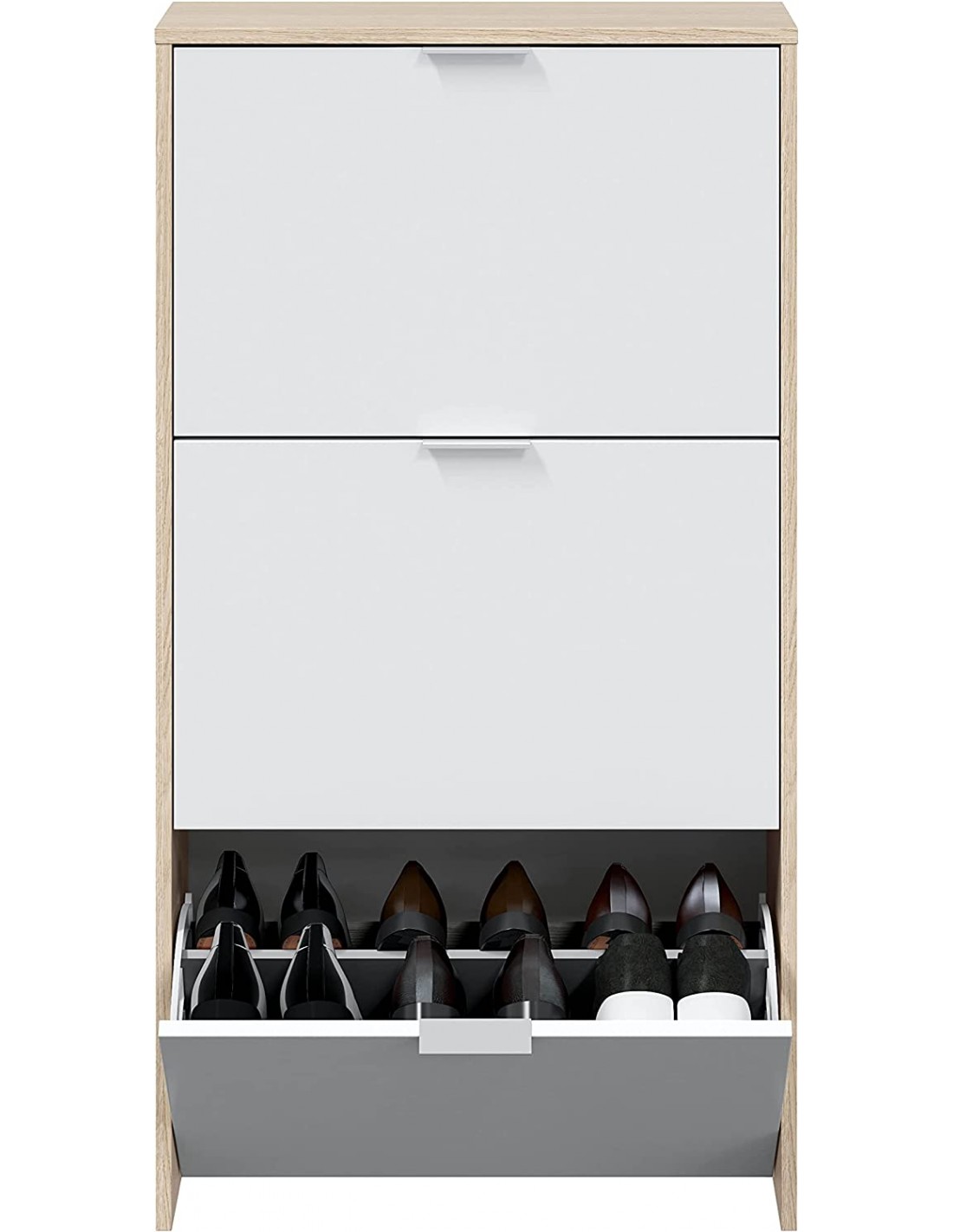 Zapatero de 3 puertas aba..bles con capacidad de 18 pares de zapatos aproximadamente.