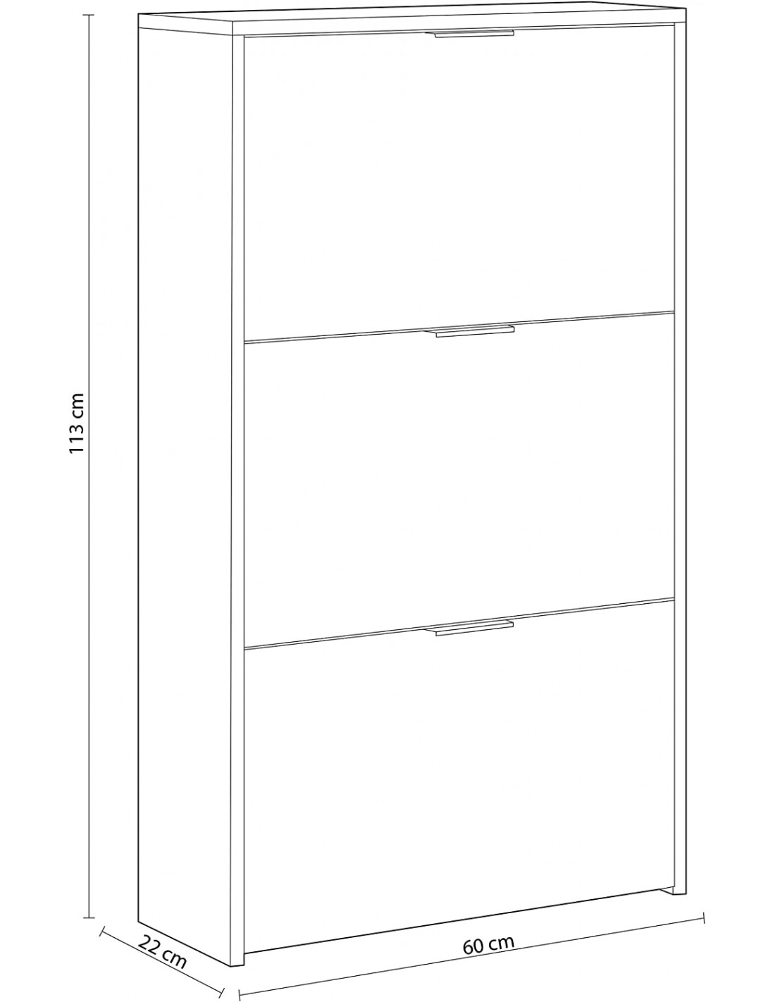 - Mueble: 113 cm (alto) x 60 cm (ancho) x 22 cm (prof.).