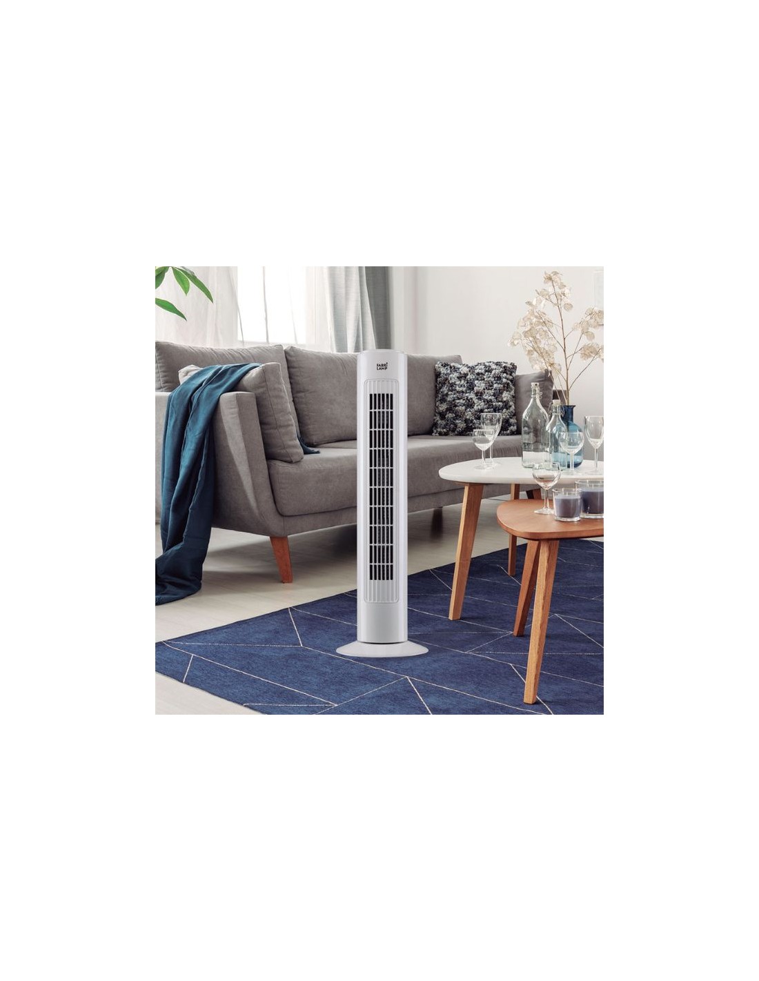 El diseño compacto y elegante de nuestro Ventilador de Torre blanco de Fabrilamp se ajusta a cualquier ambiente, aportando estilo y modernidad sin ocupar demasiado espacio. Con su capacidad de oscilación de 360°, este ventilador reparte una brisa refrescante en todas direcciones, garantizando que cada rincón de tu habitación reciba su dosis de frescor.