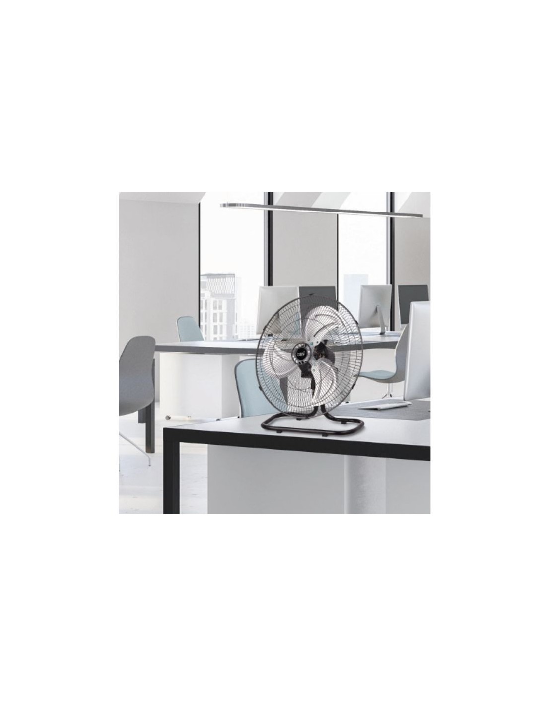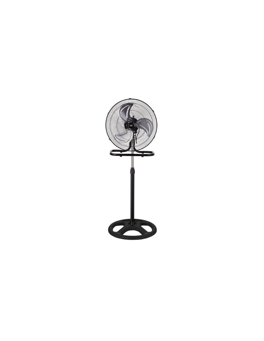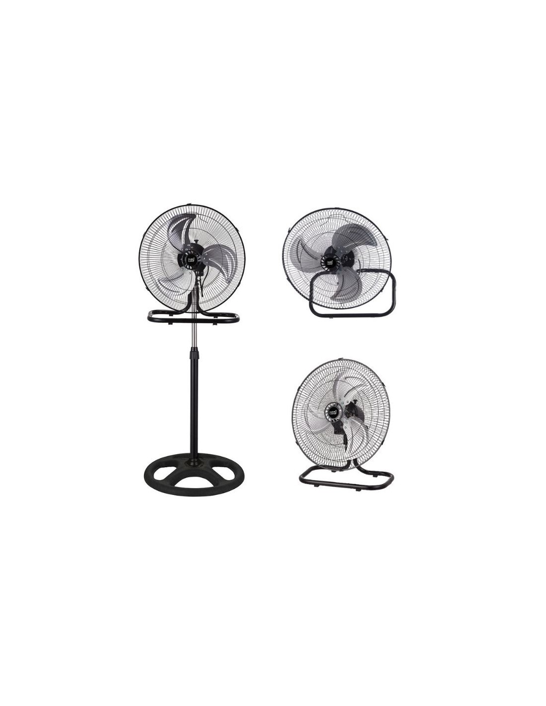 Este ventilador industrial de suelo y pared, realizado en metal y policarbonato de color NEGRO, es mucho más que un ventilador común. Con sus tres fuertes aspas de aluminio en color PLATA, RECIO se adapta a tus necesidades, pudiendo funcionar como ventilador de suelo, de pie o de pared.
